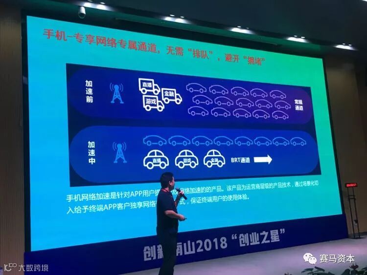 鲲鹏科技解决的是WiFi拥堵问题,而来自深圳方圆宝信息科技服务有限公司的光速联全场景网络加速器项目则为你在移动网络中开通了一条个人专属“车道”。据项目负责人曾昆介绍,团队研发的产品可根据用户的需求提供独享的网络加速服务,开通网络专属通道,无需“排队“,避开”拥堵“,其应用场景包括直播、手游和金融等。