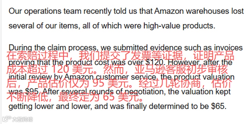 一位卖家就表示,他的一些高价值产品在亚马逊仓库不翼而飞,随后该卖家提交了发票等一系列证据进行索赔,预估产品成本超过120美元。结果亚马逊客服在初步审核后,竟然将产品估价压到95美元,卖家申诉后,平台再次将估价砍到65美元,几乎腰斩。