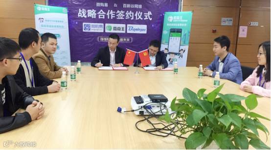 微购易创始人兼CEO郑泽群与百新谷CEO徐育渊签署战略合作协议