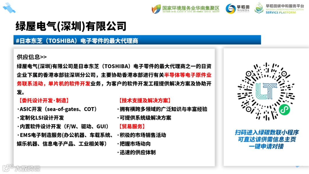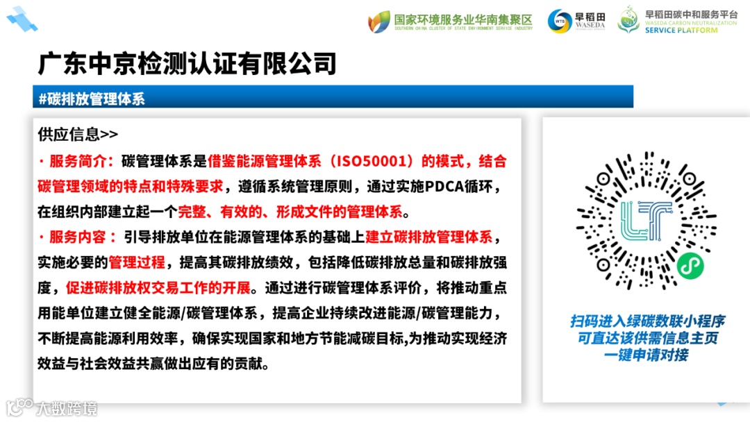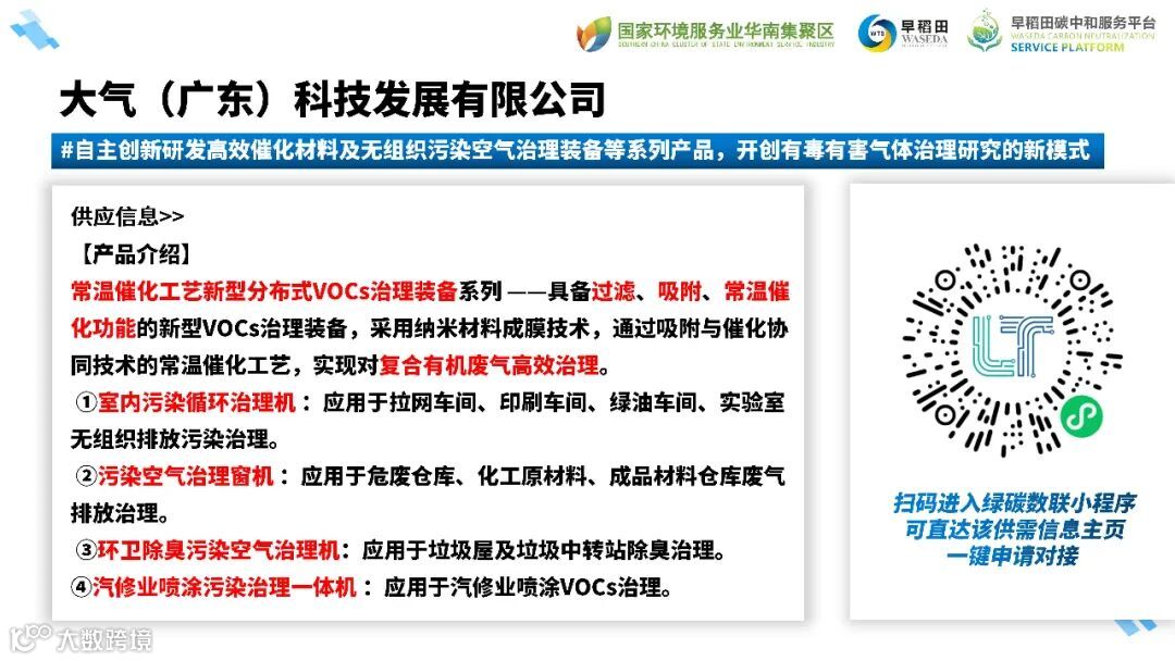 在绿碳数联平台的链接下,协助广东长天思源环保科技股份有限公司与日本堀场株式会社达成合作,针对我国企业污染源废气检测系统的检测技术提升需求,采用工业互联网技术、区块链技术和最新的烟气因子检测技术和仪器,开展新型烟气检测技术研究及标准化。