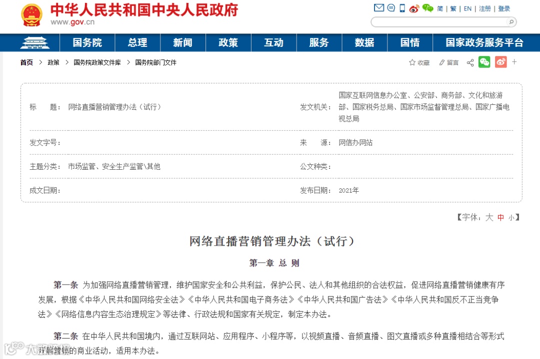 《网络直播营销管理办法(试行)》