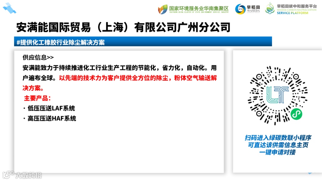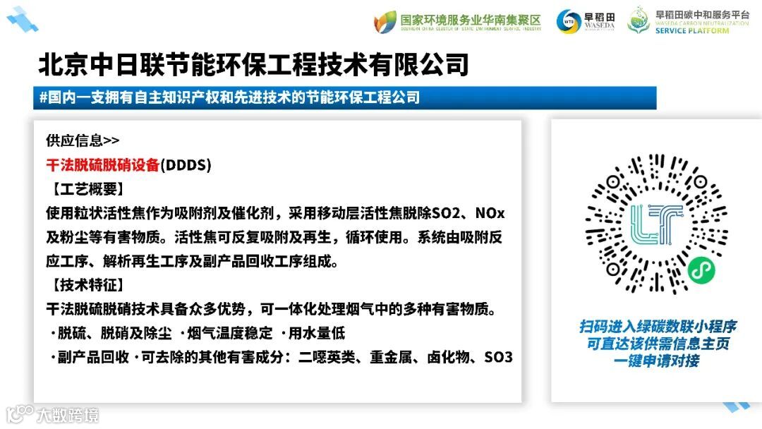 在绿碳数联平台的链接下,项目成功引进日本日立造船的高速纤维过滤技术,并获得科技厅中日节能环保合作专项资助,成功在广东、湖南、成都、辽宁等地落地推广,累计经济效益超过亿元以上。