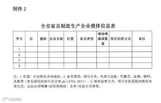(二)强化监督管理。2018年3月底前各区完成辖区内家具制造企业摸底排查工作,并报送到市环委办(报送要求见附件2)。结合村级工业园改造,清理淘汰一批环保手续不全、污染严重、规模小、产值低、分布散的落后产能,优化家具制造产业布局调整,按照时限分别完成严控区域及其区域外取缔清理工作。各级政府要强化服务,优先保证共享喷涂中心用地、规划、建设等各环节报建手续,为共享喷涂中心建设提供绿色通道。综合运用经济、法律、行政措施,对不能按照工作方案要求开展深化整治的企业,要加大查处力度,倒逼企业转型升级。