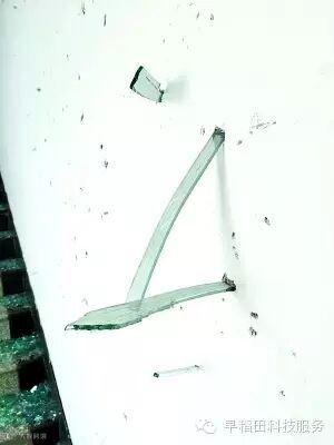 天津滨海新区爆炸事故中,爆炸产生的冲击波震碎窗户,玻璃碎片直插入水泥墙体。