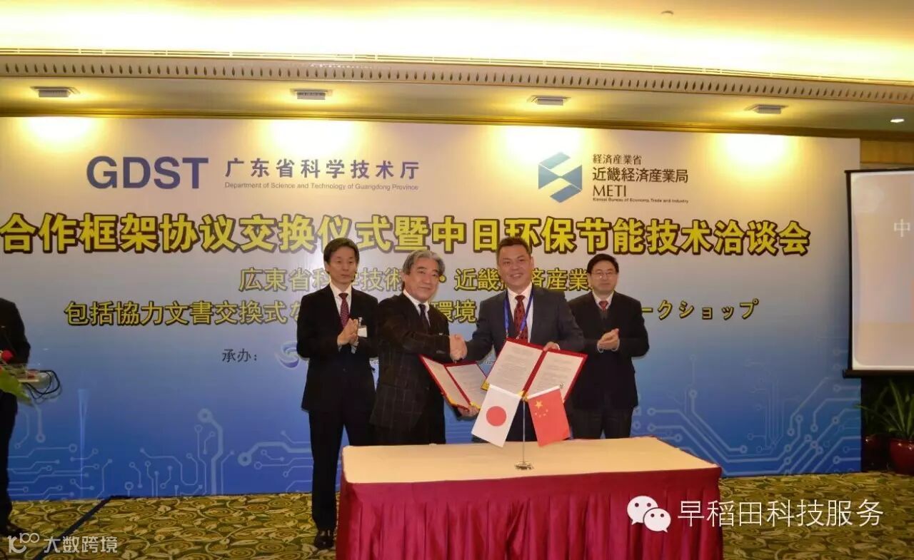 早在2010年开始,在佛山早稻田科技服务有限公司的推动下,日本近畿经济产业局就与佛山市在环保、节能领域开展了合作,并且促成了多个重点合作项目,其中有3个项目分别在人民大会堂和国家发改委举办的中日部长级会议上签约。