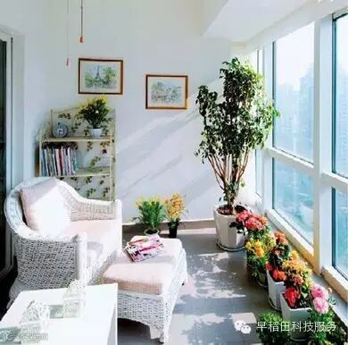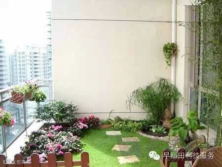 阳台的空间一般都很有限,常栽种攀缘或蔓生植物,采用平行垂直绿化或平行水平绿化。一般西阳台夏季西晒厉害,采用平行垂直绿化较适宜。植物形成绿色帘幕,遮挡着烈日直射,起到隔热降温的作用,使阳台形成清凉舒适的小环境。在朝向较好的阳台,可采用平行水平绿化。为了不影响生活功能要求,要根据具体条件选择适合的构图形式和植物材料。