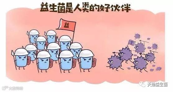 对于益生菌,我们还可以这样来看,他们就是一群活着的正义的将士,长期驻扎在我们的肠道内保护和维持我们肠道微生态平衡,而肠道内还有很多只会破坏肠道微生态的细菌微生物,益生菌便会与其交战来守护我们的肠道健康。