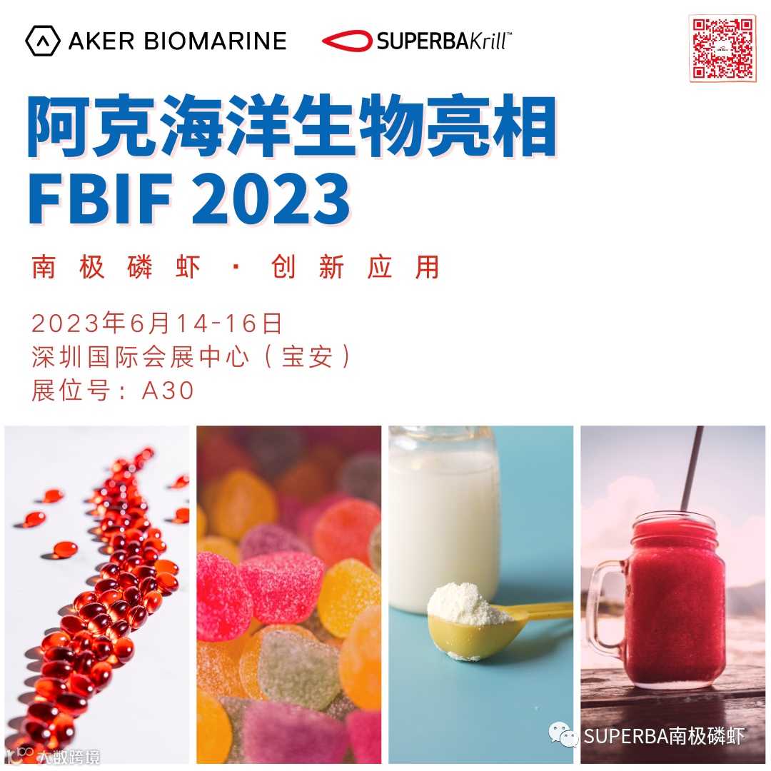 阿克海洋生物旗下SUPERBAKrill磷虾油首次参加FBIF食品饮料创新展,除了展示透亮外观,流动性佳,低腥味的南极磷虾油原料,本次更有软糖,粉剂,饮品等解决方案共同亮相。欢迎各位嘉宾莅临展位体验交流,共同开发功能性食品饮料新思路。