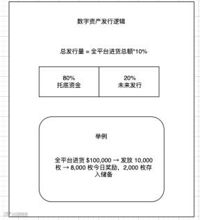 举例:全平台进货 $100,000 → 发放 1,000 枚 → 800 枚今⽇奖励 ,200 枚存⼊储备。