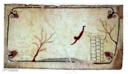 《潜水人之墓》(Tomb of the Diver),保存于那不勒斯国家考古博物馆,出土于古希腊墓的壁画。壁画描述了亡者正在去往地狱之门,也有说法说他生前曾是潜水员或喜欢跳水或潜水,在画的下方就绘制了一颗遵循斐波那契序列的“对生”的树。