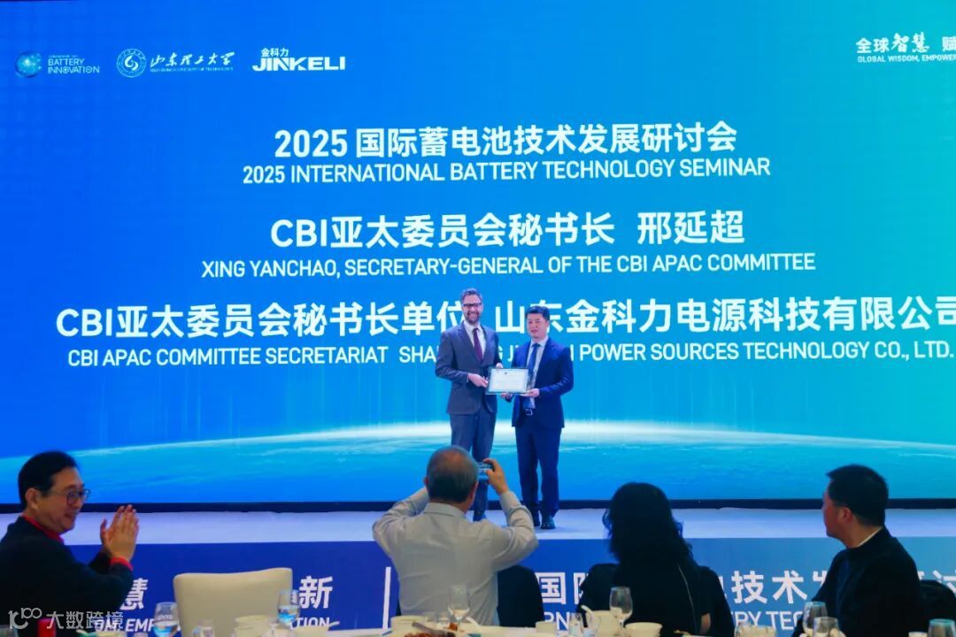 国际电池创新联盟主席Alistair Davidson为总经理邢延超颁发CBI亚太委员会秘书长聘书,金科力公司同时被聘为CBI亚太委员会秘书长单位。