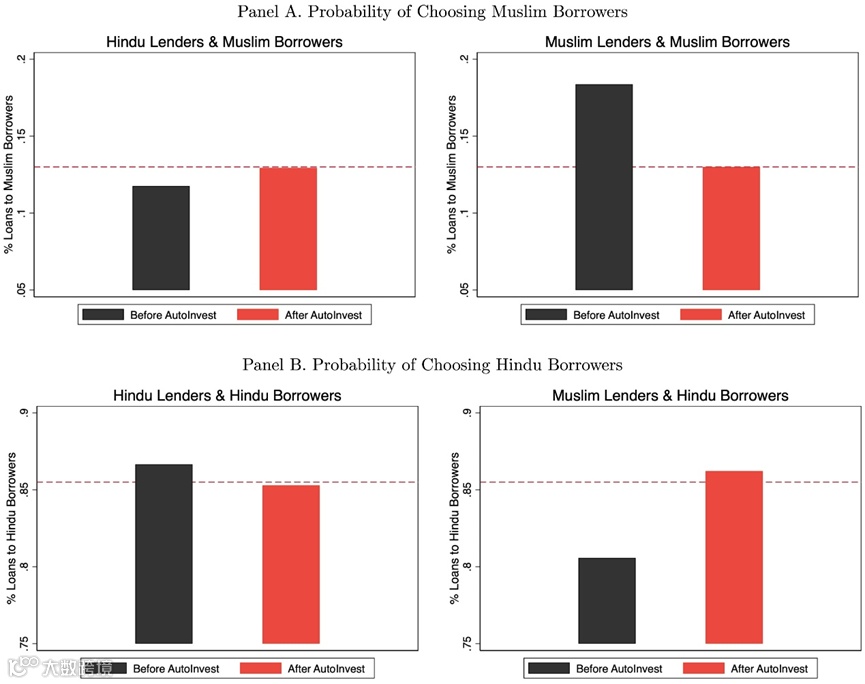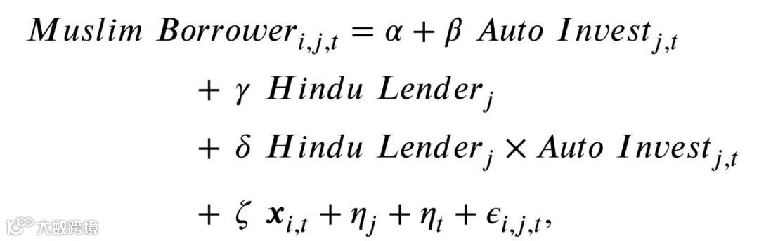 使用Auto Invest后,两类贷款人对异宗教群体的贷款比例均趋近于平台上的群体比例,表明机器人建议有效消除了宗教偏见。多元回归分析进一步证实了这一结果。研究者估计了以下计量模型: