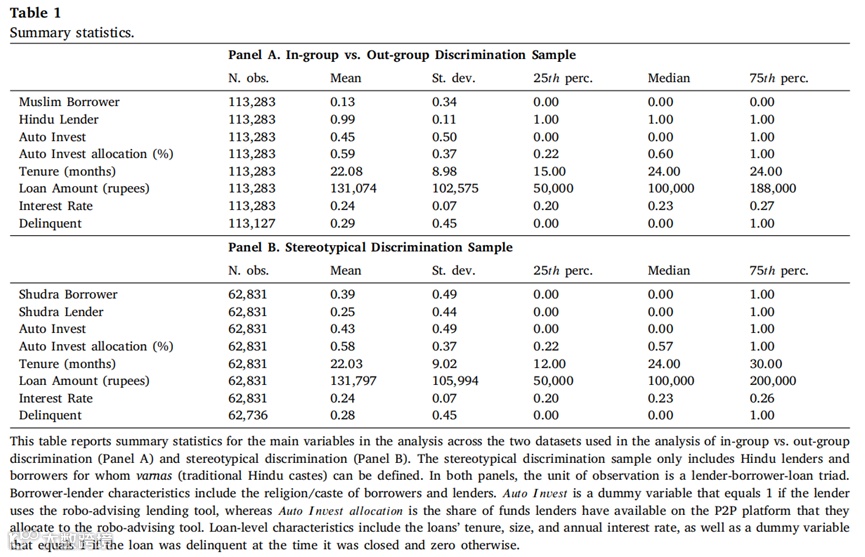 研究使用了2018年1月至2020年3月期间的七类数据集,涵盖贷款人特征、借款人特征、贷款合同信息、还款表现及Auto Invest使用情况等。由于平台未直接收集宗教与种姓数据,研究者通过印度婚姻登记数据,结合Bhagavatula等人开发的算法,依据姓氏、地理位置等信息推断了贷款人与借款人的宗教与种姓归属。