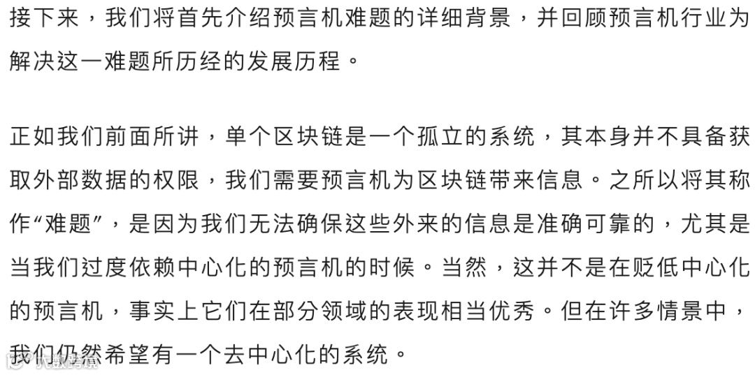 但对于预言机网络来讲,我们需要加总大量来自区块链生态外部的信息, 这意味着我们首先需要担心这些信息是否可以信赖。其次,我们需要思考以何种方式来加总并报告信息,上传至区块链中。