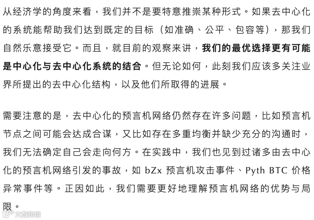 不过,即便完全解决了预言机不可能三角,我们还是不能从根本上消除区块链的安全隐患,更无法保障生态系统的长期可持续性。区块链预言机在技术和经济学层面均存在诸多脆弱性,我们需要健全的架构设计和机制设计来完善这些漏洞。