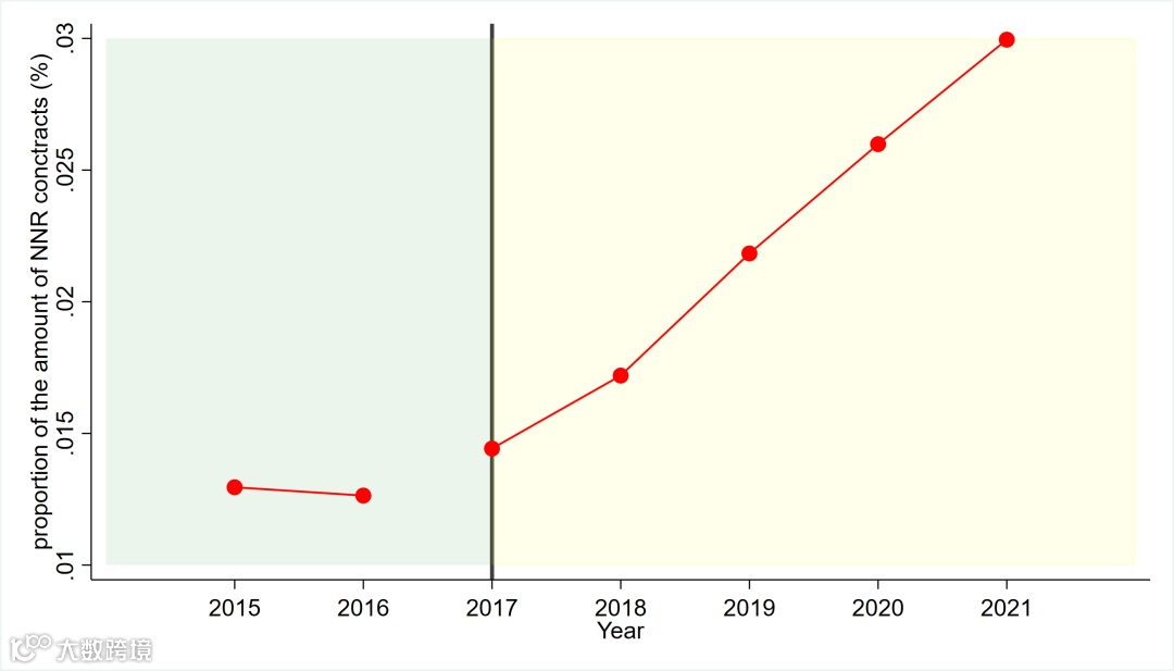 第二,通过分析政府采购公告文本,文章发现随着GSA的推进,地方政府采购中与NNR相关的项目占比显著提高,说明当地在生物多样性保护方面的确有实质性投入;