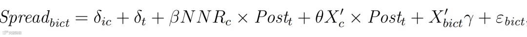其中,b指债券,i指发行人,c指城市,t指年-季度,Spread代表城投债利差;NNR代表处理组虚拟变量:若城市包含NNR则为1,否则为0;Post代表处理时间虚拟变量:GSA开始后的时期为1,否则为0;X代表城市层面的控制变量;Z代表债券层面的控制变量。模型还考虑了时间固定效应和发行人固定效应。