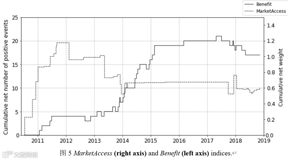 图5 MarketAccess (right axis) and Benefit (left axis) indices.