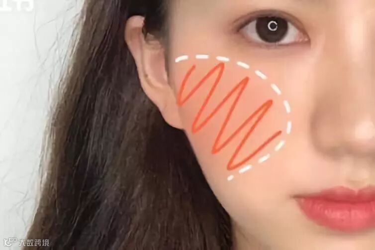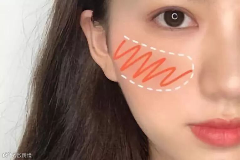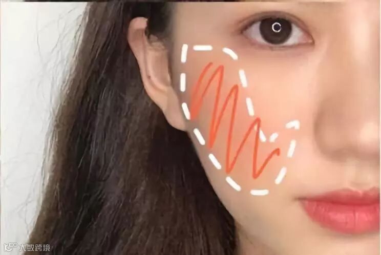 这种斜扫的腮红方法最适合面比较圆润有肉的女生,可以修饰面型,而且看起来比较知性、成熟。