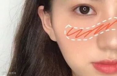宿醉妆的最大重点其实就是够重手,腮红要够红并且范围要够大,这个大范围的宿醉腮红几乎覆盖了整个脸颊,千万不要漏掉了眼下和鼻头的位置!
