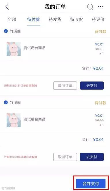 在以往的订单界面里添加了合并支付功能喔!不同店铺购买的商品可以直接一起支付。