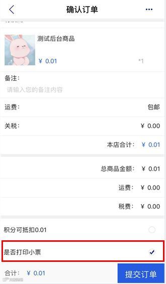 在提交订单时,在“是否打印小票”一栏右边打钩。