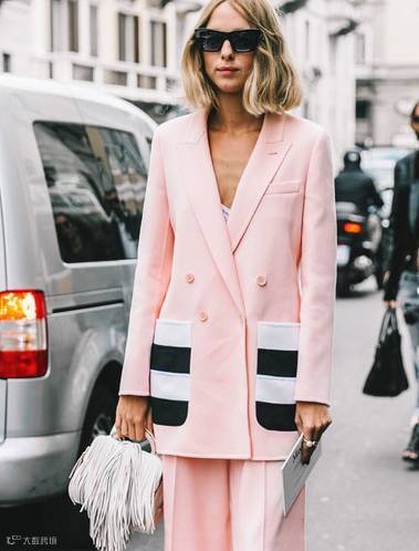 时尚编辑千千万,Candela在小编心中可以排名前十~小编还曾偷偷跑去米兰看她一眼,美翻小编~今年必备的颜色元素一定是粉色,这套衣服Candela结合时尚元素与色彩冲击,在米兰时装周的街头虽然不够抢眼,但也算耐看气质套装~
