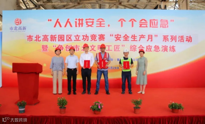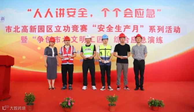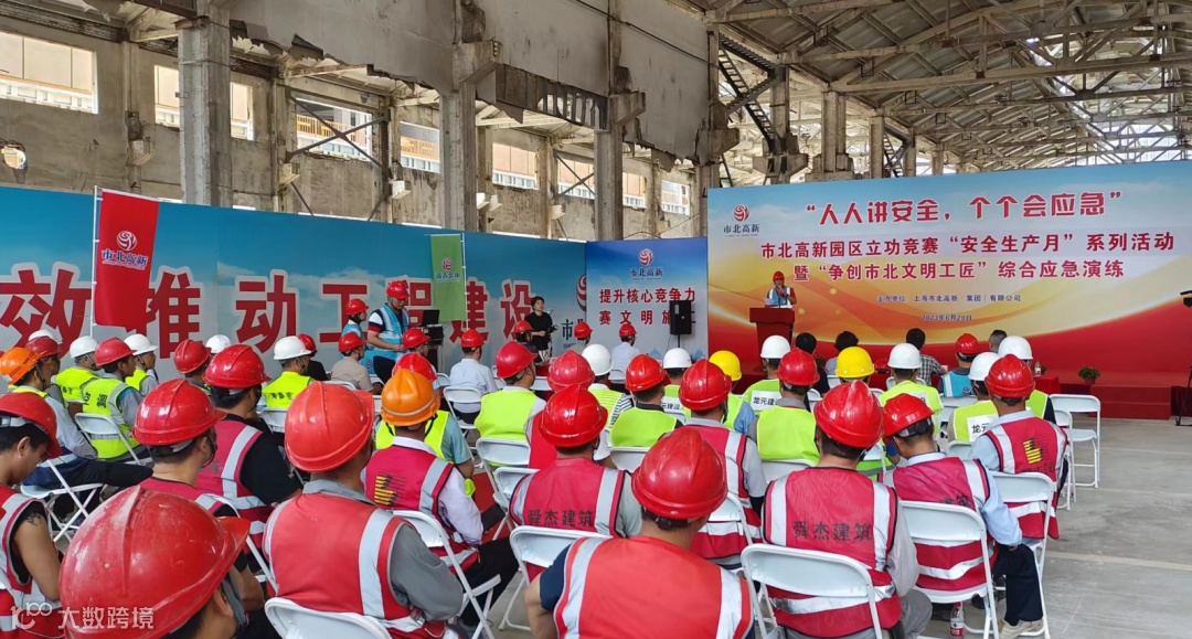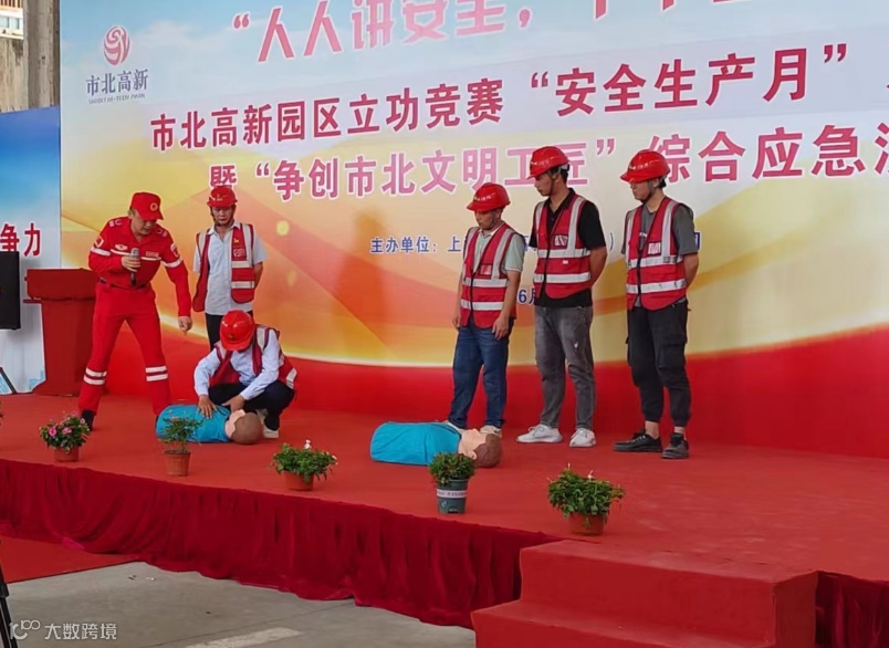 为了进一步提升工程建设领域安全意识和避险逃生能力,6月28日,以“人人讲安全,个个会应急”为主题的市北高新园区“立功竞赛安全生产月”系列活动在位于集团公司承建的市北高新22-02地块项目工地举行。静安区应急管理局局长谢志彬,静安区建设和管理委员会重大项目协调推进中心副主任汤咏梅,市北高新集团党委副书记、纪委书记、园区总工会主席张颖,市北高新集团副总裁张俊松,静安区立功竞赛办公室陈磊,集团公司副总经理洪宇出席本次活动。