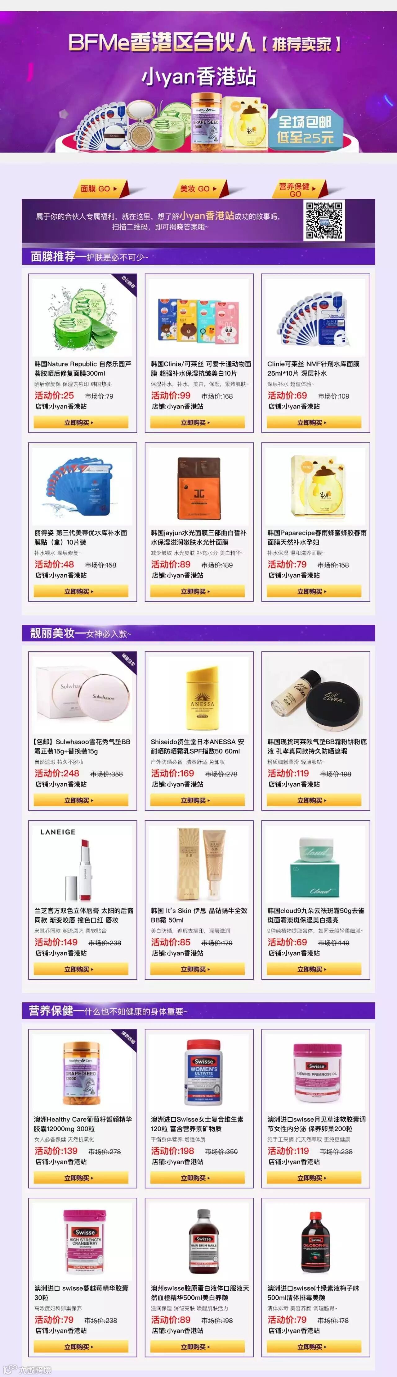 【合伙人推荐】小yan香港站全场包邮!低至25元!