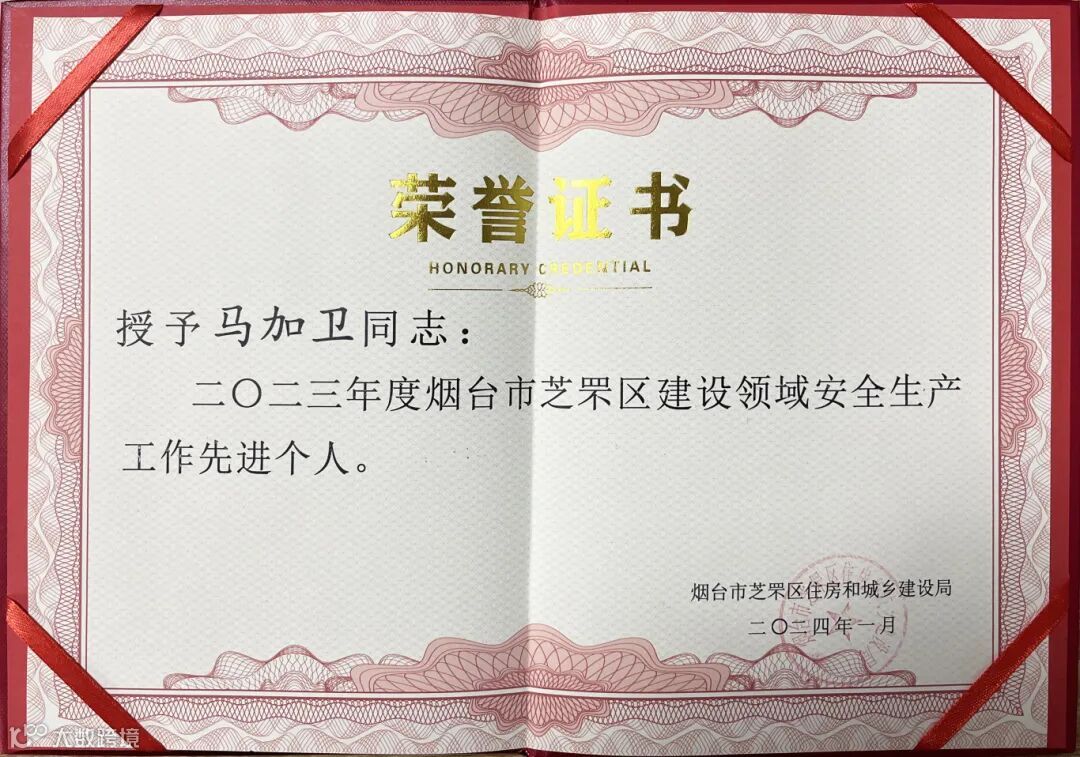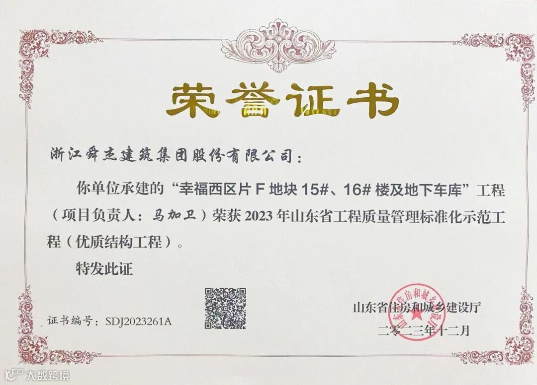 近日,山东省住建厅公布了2023年山东省工程质量管理标准化示范工程评审结果,由集团公司承建的“烟台幸福西区片F地块15#、16#楼及地下车库”项目喜获“省优质结构工程”称号。同时,该项目也荣获了芝罘区2023年度建设工程“安全生产优秀标杆工地”,项目负责人马加卫同志荣获“安全生产工作先进个人”的称号。