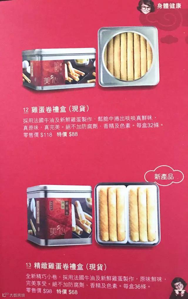 美心是香港本地家喻户晓的老字号品牌,他家的鸡蛋卷精选原料,精心烘烤,蛋香浓郁,而且非常酥脆,每一口都是非一般的惊艳滋味,一吃停不下来,连渣渣都舍不得扔掉哦~