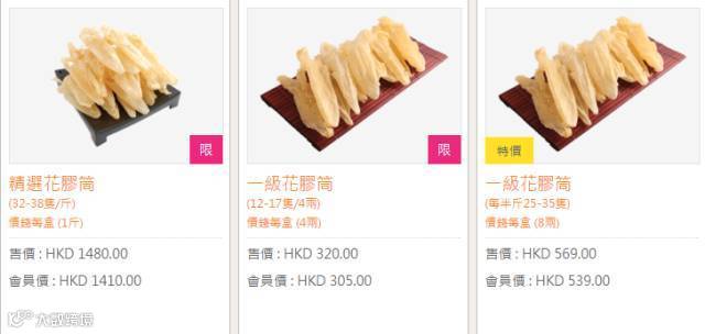 楼上花胶来香港买海味,当然是选楼上花胶啦。花胶不仅能滋阴养颜,而且高端大气上档次,是逢年过节,不可或缺的送礼佳品。如果想自己买回家准备年夜饭,推荐袋装的花胶,价廉又物美。
