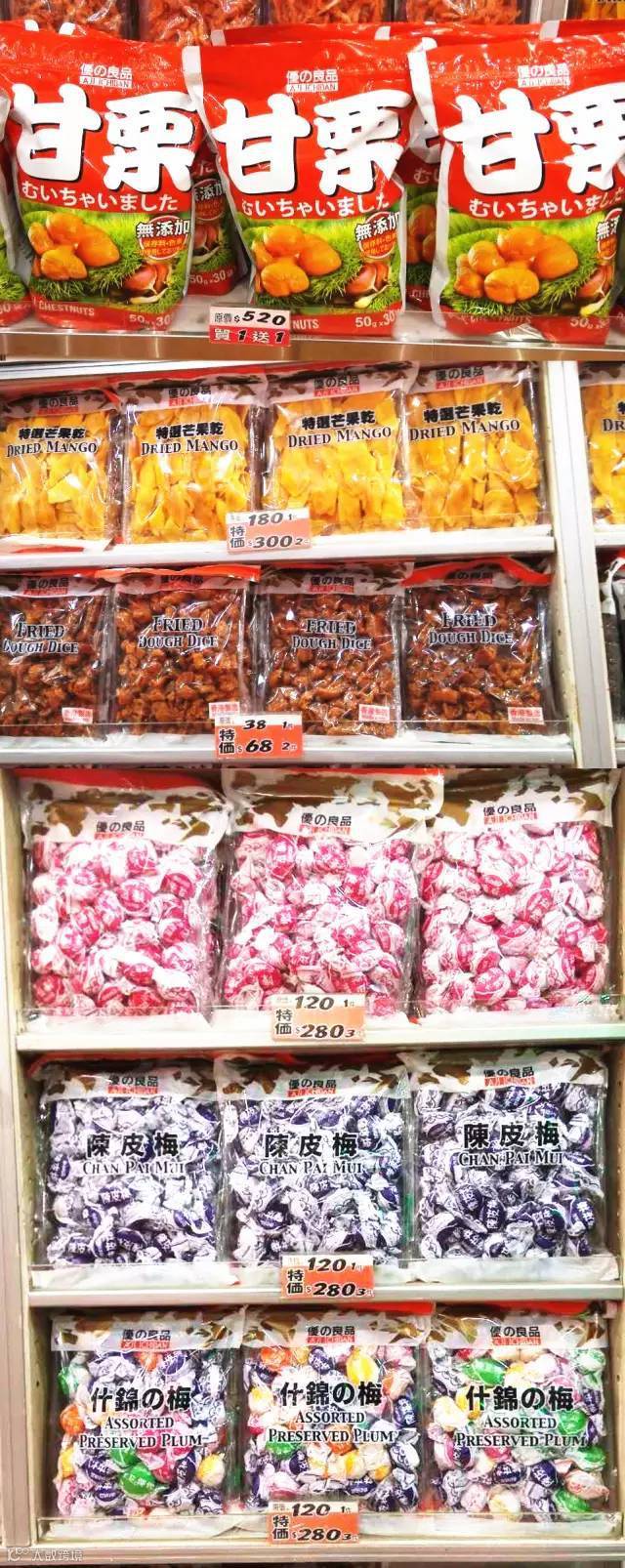 年货买最多的当然是零食和糖果,那在香港哪里可以一次性扫光这些年货呢?首选当然是优之良品。优之良品在香港很多地方都有开店,包括商场和地铁站。其中最有名的有天津甘栗、肉松蛋卷,玫瑰纤体梅,芒果干。