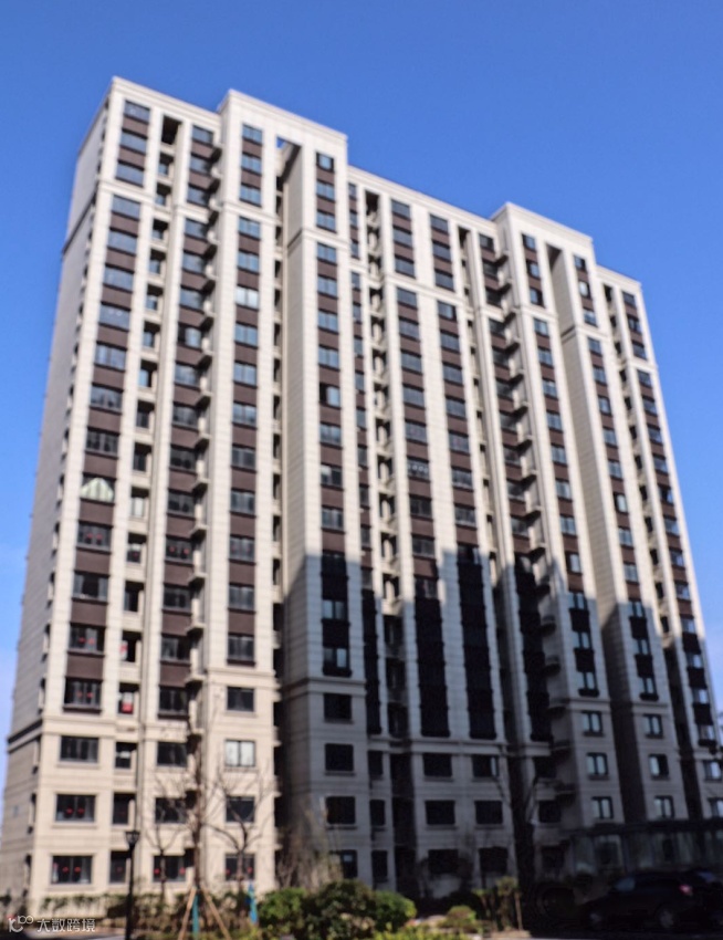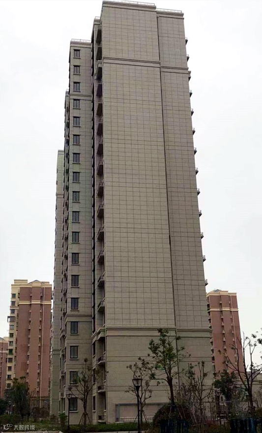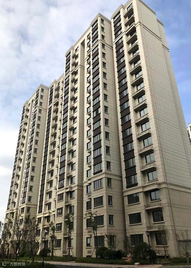 外立面采用真石漆和软瓷相结合的立面形式,基座线条以上外墙面为米黄色真石漆,基座线条以下为软瓷砖铺贴,外墙面平整、勾缝顺直。