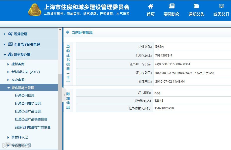 相关施工单位、监理单位、再生处理企业、再生产品应用企业等可使用数字证书登录上海市人民政府一网通办网站(http:// zwdt. sh.gov.cn),进入市住房城乡建设管理委频道一建设管理服务栏目・节能、建材项目-废弃混凝土回收利用信息系统事项,进行信息报送。