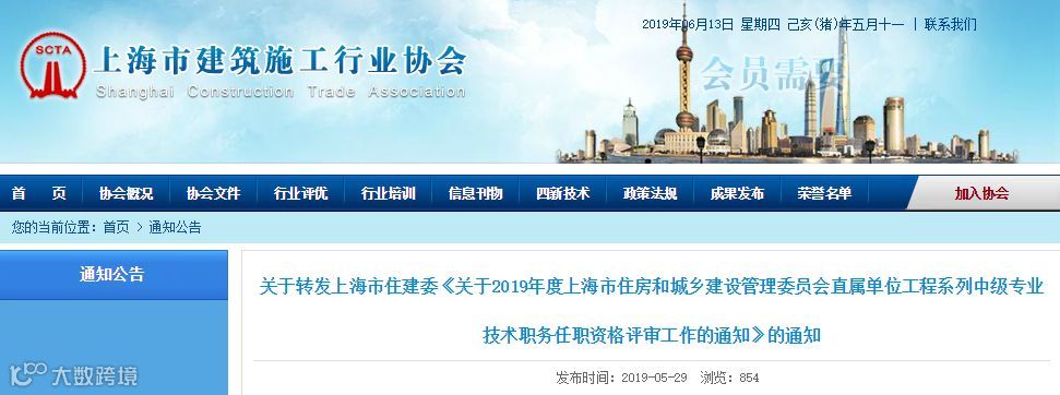 为进一步做好工程系列中级专业技术职务任职资格的评审工作,根据《关于规范本市专业技术职称申报条件的通知》(沪人社专【2017号】115号)等文件精神,经上海市人力资源和社会保障局同意,现将2019年度上海市住房和城乡建设管理委员会直属单位工程系列中级专业技术职务任职资格评审工作有关事项通知如下: