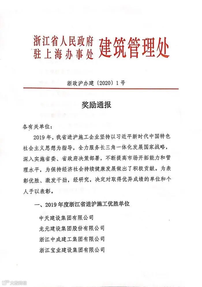 日前,浙江省人民政府驻沪办发文表彰2019年度取得优异成绩的进沪施工单位和个人。集团公司荣膺“2019年度浙江省进沪施工先进单位”的称号,这是集团公司连续26年荣获此殊荣。