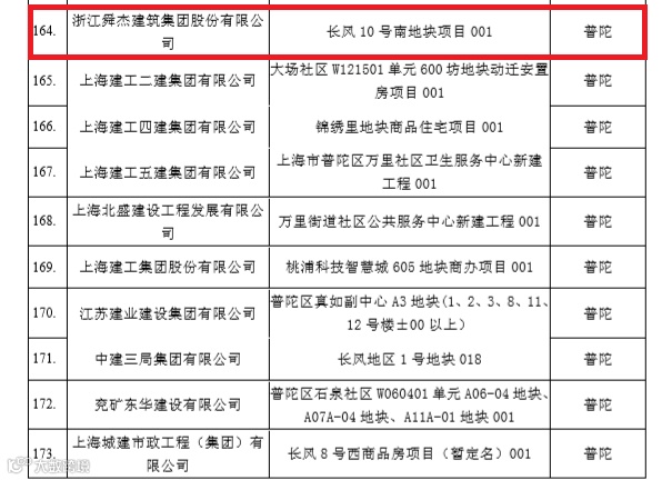 市住房和城乡建设管理委员会下发的关于命名2019年度上海市文明工地(场站)的通知,由集团公司承建的【长风10号南地块项目】、【临港新城主城区WSW-C2-04、WSW-C2-05地块普通商品房项目】同时荣获“2019年度上海市文明工地”荣誉称号。
