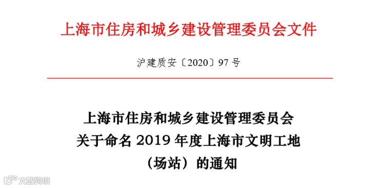 导读:由上海市住房和城乡建设管理委员会下发的关于2019年度上海市文明工地的通知