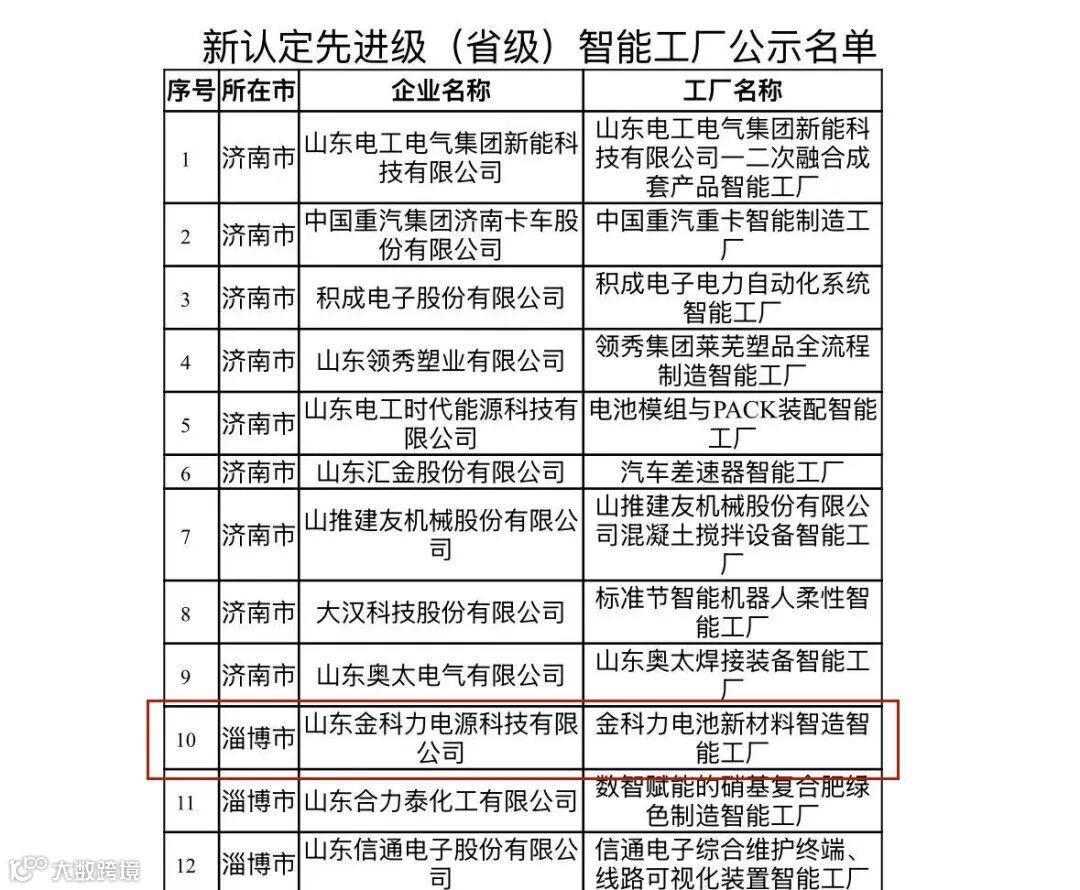 近日,山东省工业和信息化厅发布了2025年先进级(省级)智能工厂和省级智能制造优秀场景公示名单。金科力公司电池新材料智造智能工厂入选新认定先进级(省级)智能工厂名单。