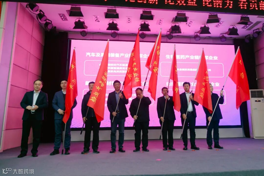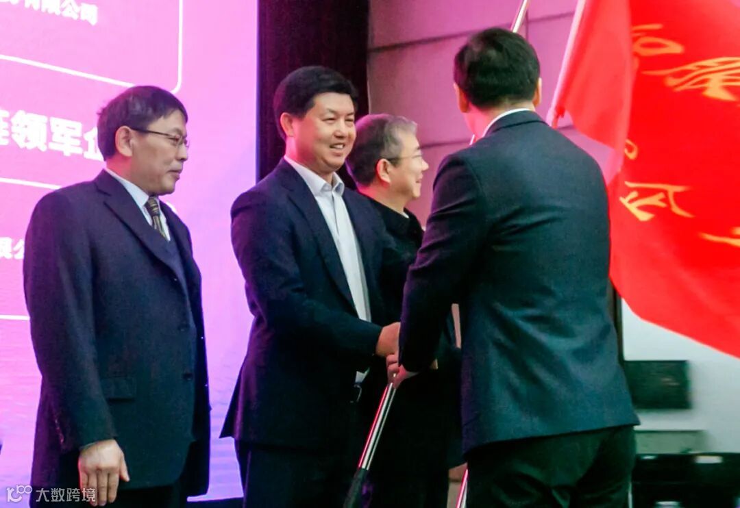 在开发区产业链领军企业授旗仪式上,授予金科力公司为新能源新材料产业链领军企业荣誉称号,区委常委、区政府副区长,开发区党工委书记刘鸿智向公司总经理邢延超授旗。