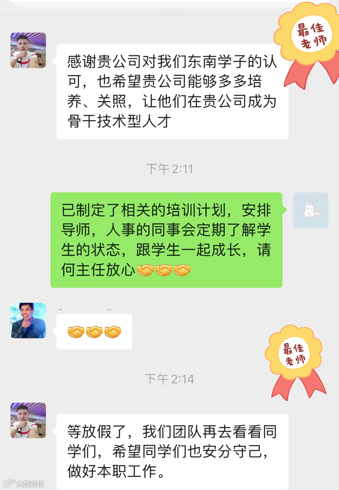 暖心瞬间一:皮孩子毕业了,从同学变成了同志,却永远是老师的学生。