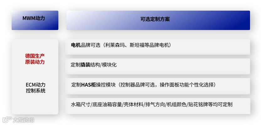 凭借研发设计优势,科泰德在提供MWM原装动力的基础上,可为客户实现个性化定制选配,具备高度灵活性,满足多样化需求。