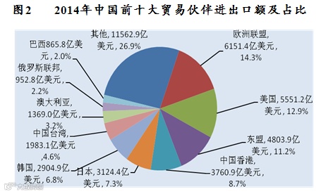 进出口市场结构更趋平衡。对发达国家进出口保持稳定,2014年对欧盟和美国进出口分别增长9.9%和6.6%。进出口企业开拓新兴市场取得新成效,对东盟、印度、俄罗斯、非洲和中东欧国家进出口增速均快于整体增速。自贸区战略促进出口的效果明显,对自贸伙伴(不含港澳台地区)出口增长10.6%,占出口总额的比重为13.4%,较2013年上升0.6个百分点。