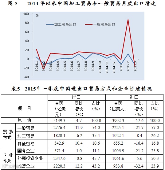 二、2015年一季度中国对外贸易发展情况