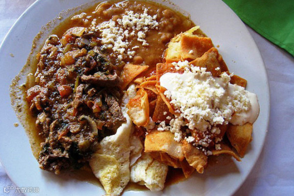 墨西哥人噬辣人尽皆知,不过这样的早餐也未免太不健康了吧,一大早就吃上了辣牛肉酱,还有大量乳酪和玉米脆片的油炸食品,高热量兼辣,不是当地人的话估计吃两天就受不了了呢。