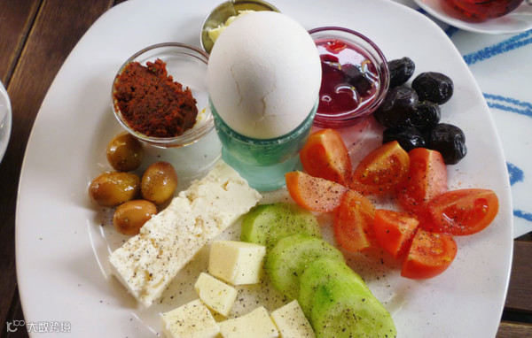 芝士、番茄、青瓜、橄榄、牛油,还有鸡蛋和辣肉酱是土耳其的常见早餐组合,每种食物的分量都不大,但却是需要坐下来好好品尝的美味,因为赶时间而囫囵吞枣就太可惜了。