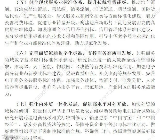 8月25日消息,商务部发布《关于加强“十四五”时期商务领域标准化建设的指导意见》(以下简称《意见》),《意见》分为四个部分,第三部分是重点领域,《意见》注重将需求导向和问题导向相结合,根据“十四五”时期我国贸易流通发展对标准化的迫切需求,聚焦高质量发展,对农产品流通、生产资料流通、供应链物流、流通设施、现代服务业、数字商务等七个重点领域,提出了具体目标措施,旨在通过标准化引领行业发展、规范市场秩序、推动流通变革、促进消费升级。指出主动研判商务领域新发展趋势,加快绿色流通、数字商务等新兴领域标准制修订,就是要引导流通企业贯彻绿色流通标准,促进商务领域节能减排。商贸流通数字化方面,研究建立统一的大数据全流程管理标准,推动5G、人工智能、物联网、区块链等新技术标准化应用,更好支撑商务高质量发展。