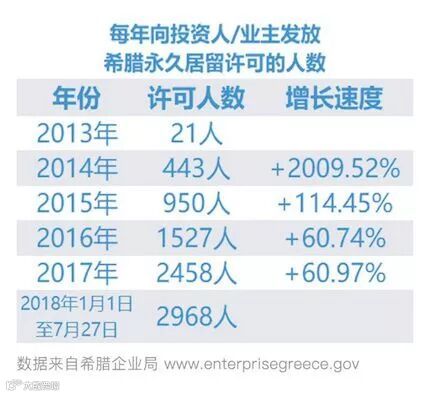 2018年上半年,希腊投资移民获批数量暴涨。自2013年希腊投资移民法案颁布以来,申请人数逐年递增。2018年申请数量呈井喷式增值,仅上半年希腊就为购房投资人颁发永居许可证2968户,超过2017年全年审批数。