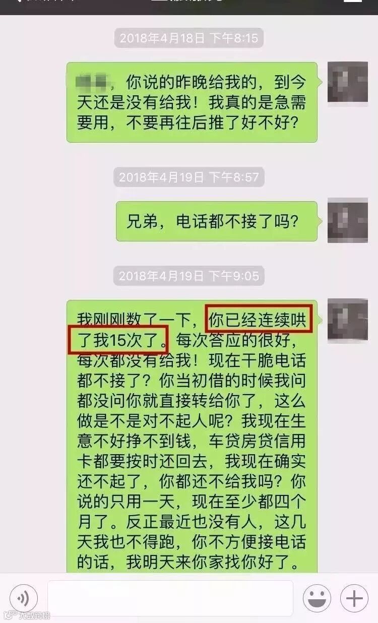 后来聊天截图传到了朋友圈,借钱男子看到后称,“玩笑开得有点大,老弟。”并称两人聊天内容曝光,涉及到其个人隐私。